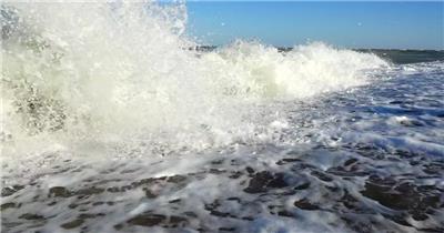 空中摄影大海海岸边海浪冲向海岸岩石