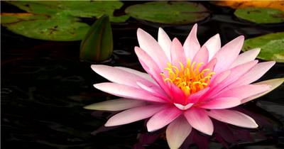 池塘莲花上的蜜蜂采蜜高清实拍
