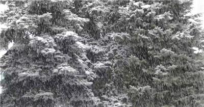 冬季雾蒙蒙的下雪森林实拍视频
