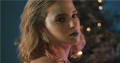 圣诞节下雪时化妆的女孩