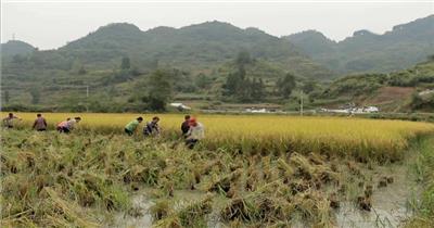 五谷丰登 秋天 收割水稻谷 视频素材