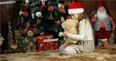 圣诞节欧美家庭一家人在圣诞树前自拍