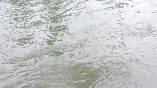 慢摄特写雨滴落在湖面上溅起水波视频素材