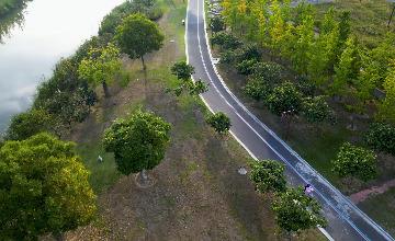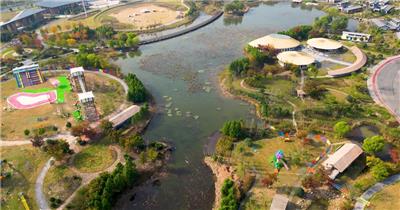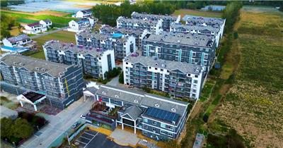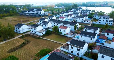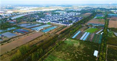 4K航拍清晨河道穿过的乡村