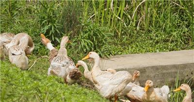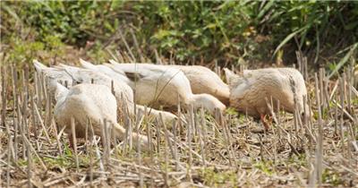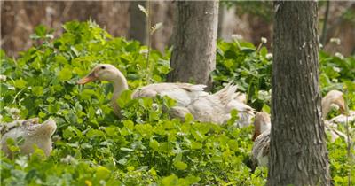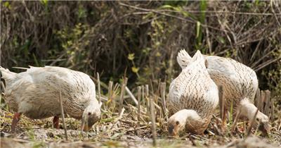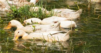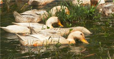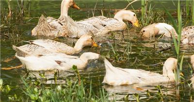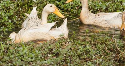 农村散养鸭子池塘觅食特写实拍