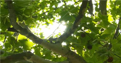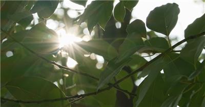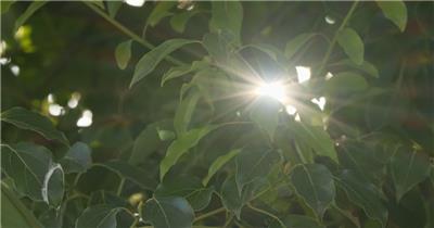 春天植物树木绿草星芒逆光爬山虎