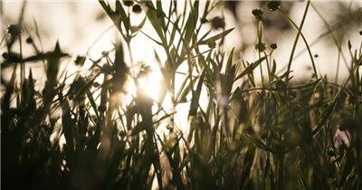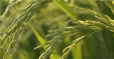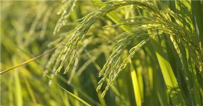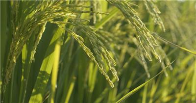 夕阳下金色水稻穗唯美安静