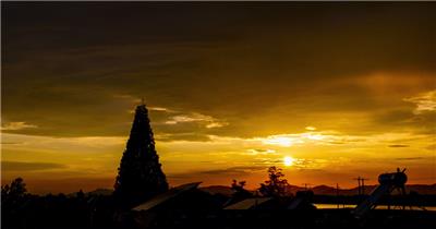 农村太阳日落西山水稻田野