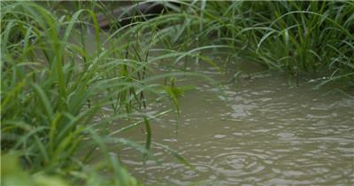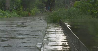 阴天下雨水滴水泥地马路升格