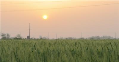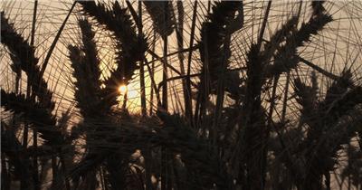 秋天傍晚黄昏夕阳小麦田野麦穗