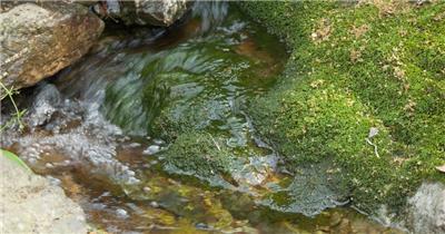 春天清澈湍急山泉水流小溪
