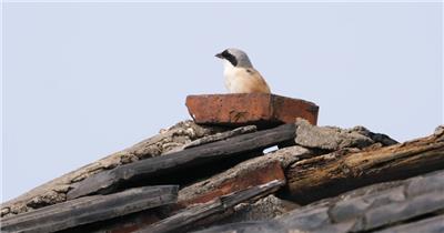 春天雨后瓦房屋顶乌鸫打理羽毛