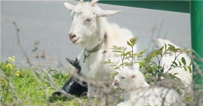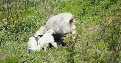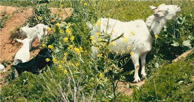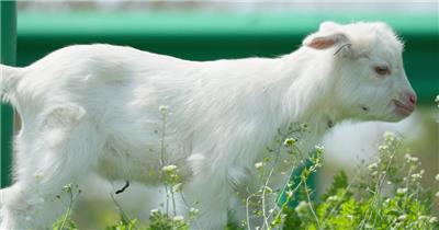 春天山羊小羊羔家畜在草丛中