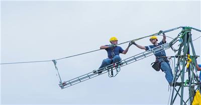 高压线 工人 攀爬 高空作业 攀登 电线