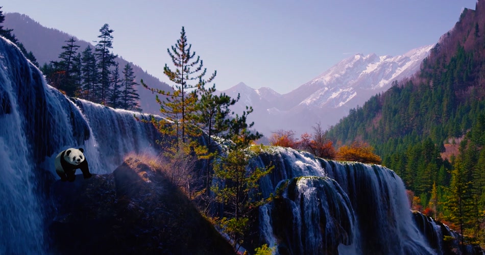 4K九寨沟唯美瀑布与大熊猫是由设计师视界开拓工匠在2022/5/27 19:19:05成功上传. 浏览本次作品的您可能还对 瀑布 山峦