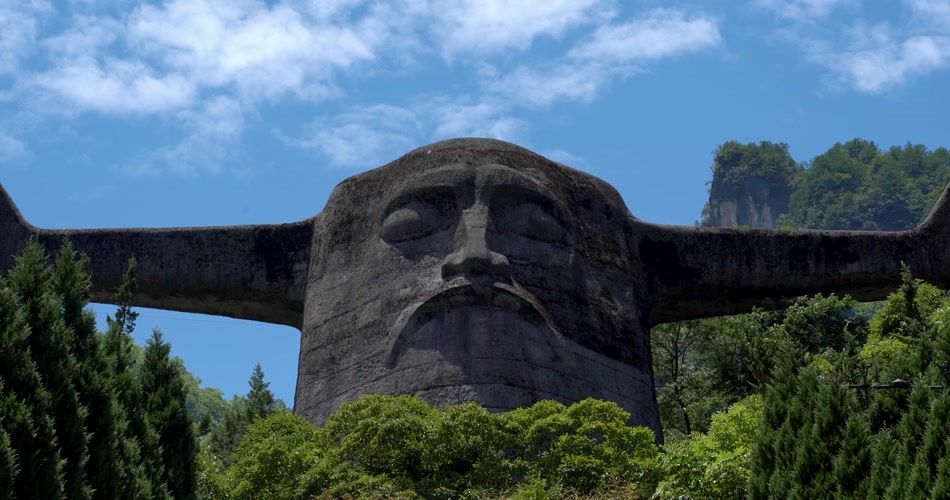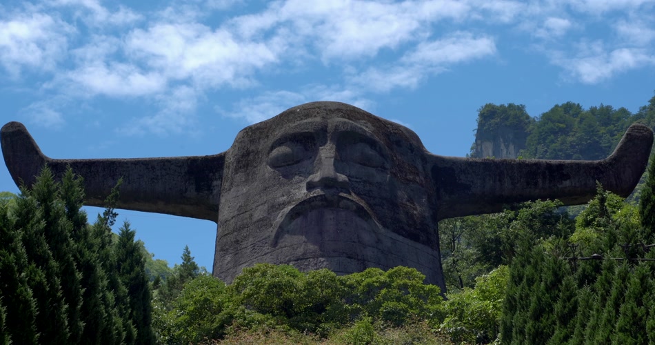 神农架神农坛祭祀天坛牛首人像4K视频素材