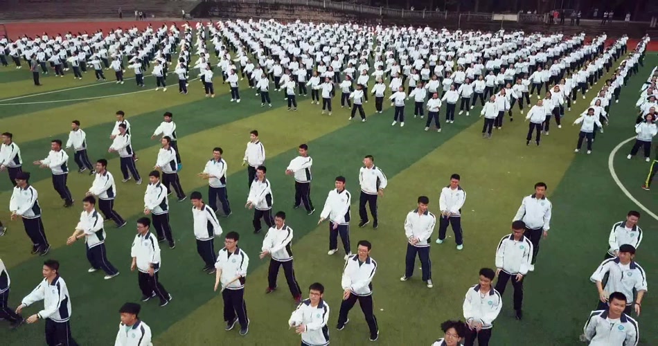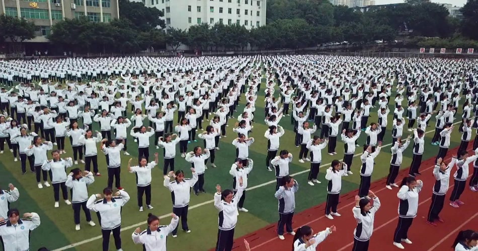 航拍中学生广播体操