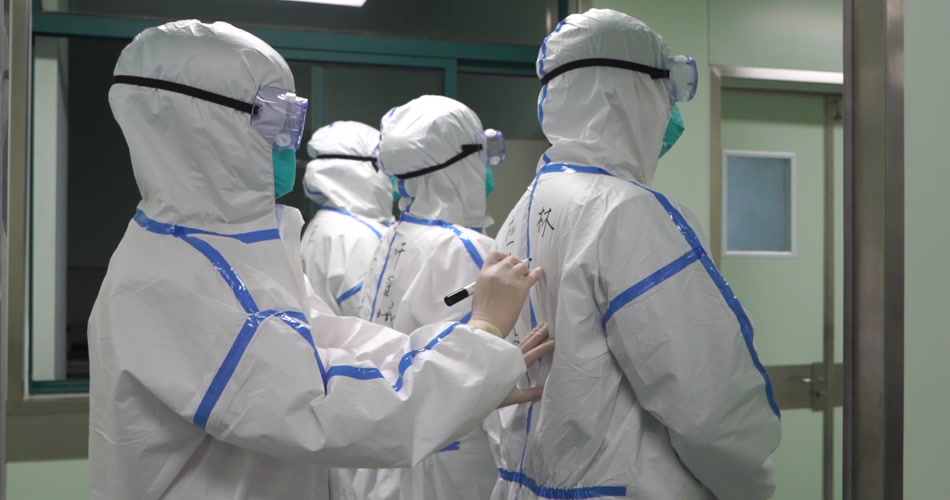 疫情防护服 写名字 进入隔离区 抗疫 宣传视频素材