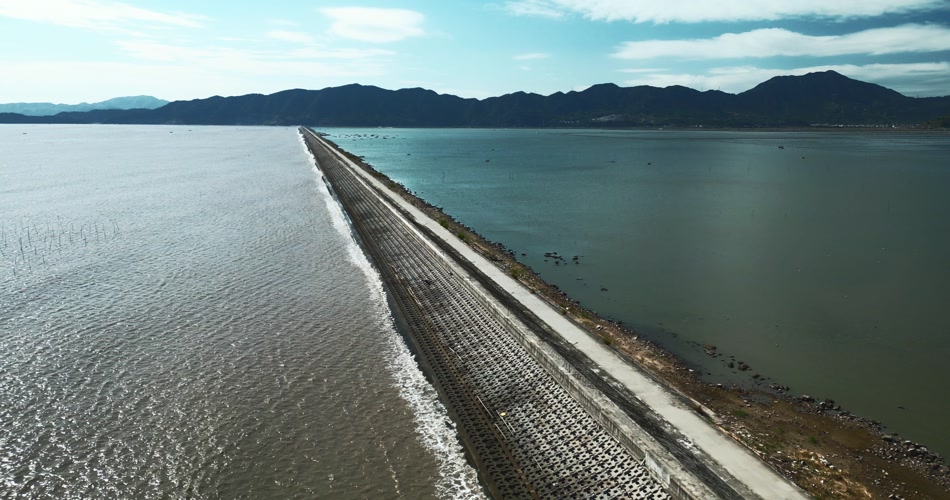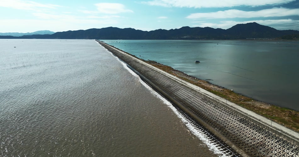 福建霞浦滩涂堤坝防洪堤海景航拍