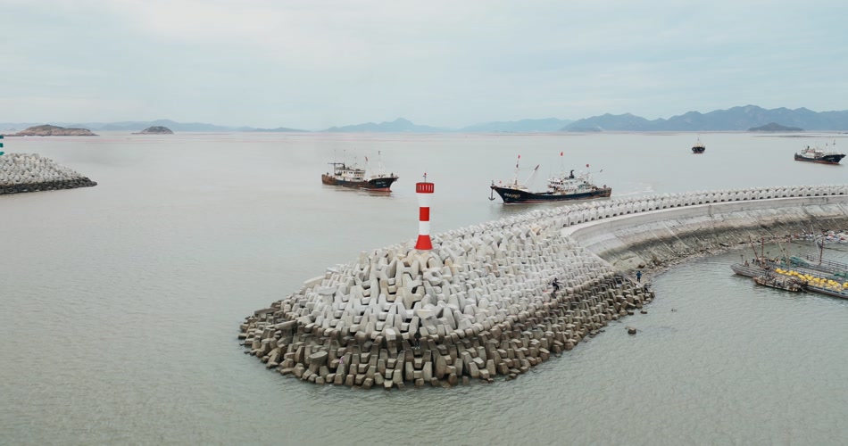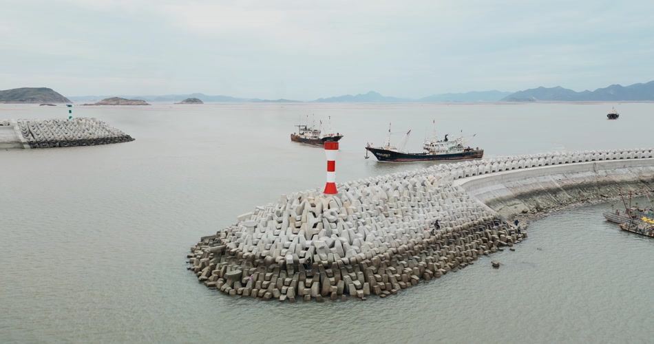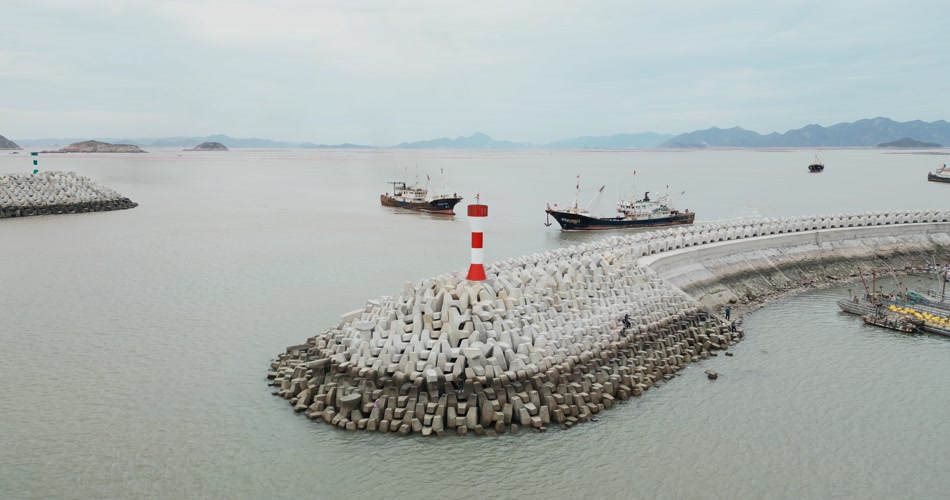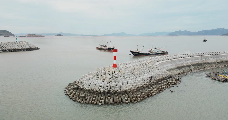 霞浦码头堤坝航拍4K