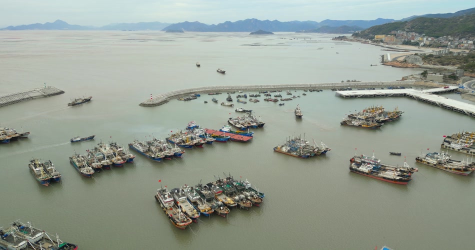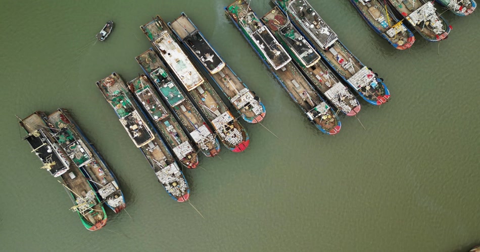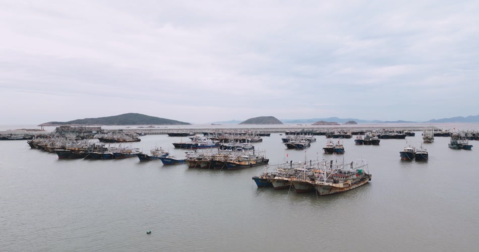 霞浦码头渔船航拍4K