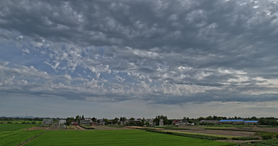 云层笼罩乡村稻田24