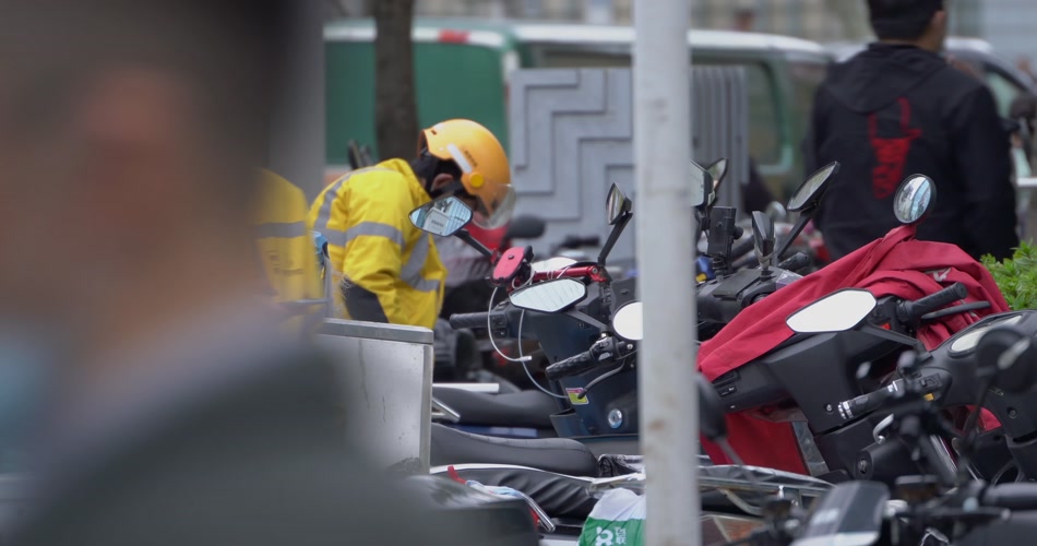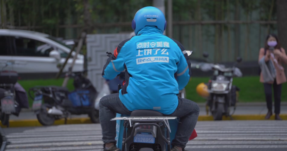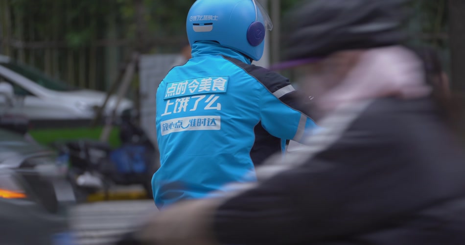 在城市里穿梭的外卖员骑手