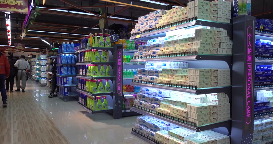 4k超市商品琳琅满目摆放整齐物质丰富