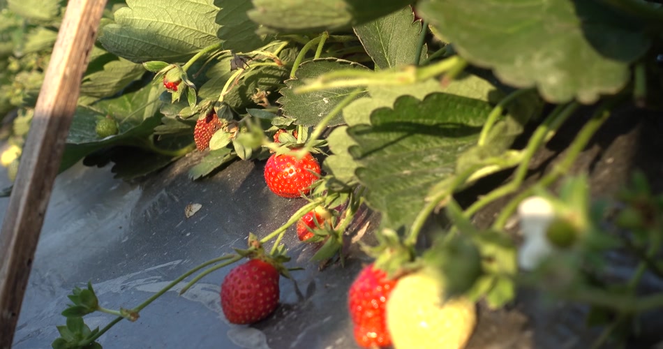 4k草莓园草莓田草莓果草莓花草莓叶青草莓红草莓