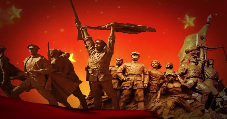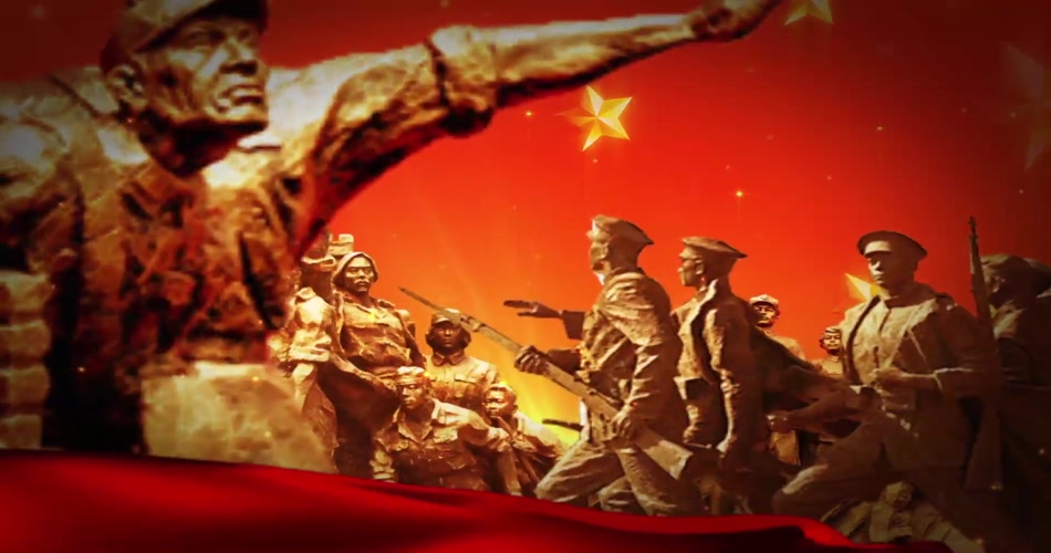 八路军红绸飘扬革命烈士抗战纪念碑雕塑人物 晚会LED视频素材