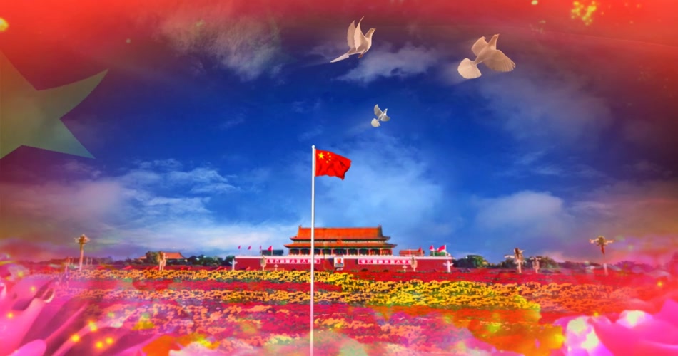 大气中国红歌颂祖国诗词歌曲舞台背景视频
