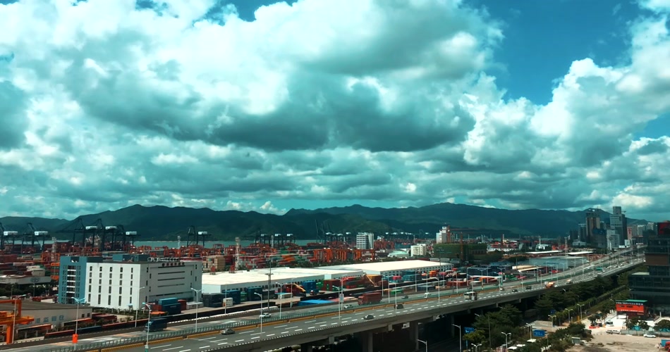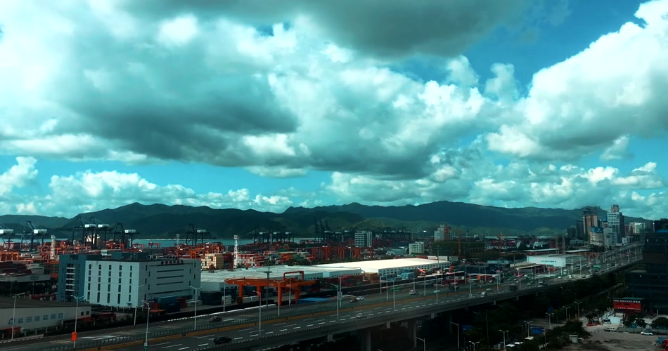 实拍深圳海岸码头蓝天白云延时摄影视频素材