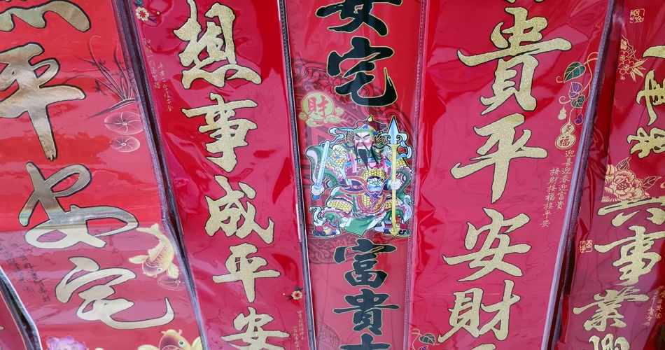 实拍中国风喜气洋洋过年春联高清背景视频