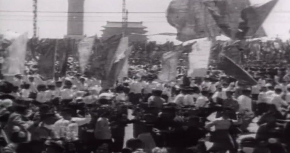 实拍黑白新中国成立人民庆祝纪录片视频素材