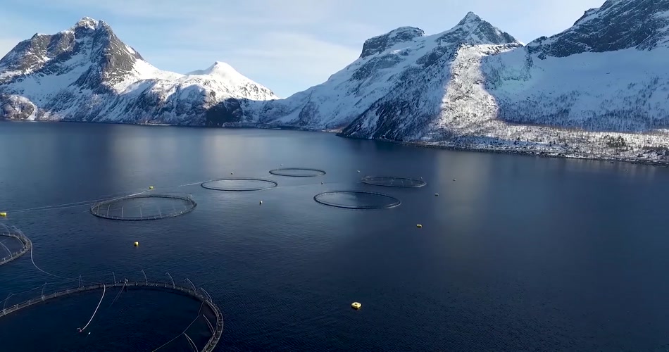 三文鱼生长养殖雪山挪威三文鱼生产视频素材