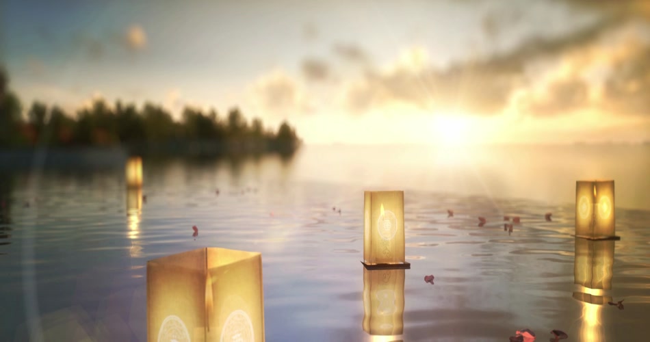 别墅 洋房 三维建筑漫游动画 湖景 水景 唯美 3d 动画 房产 地产 湖边 水中灯
