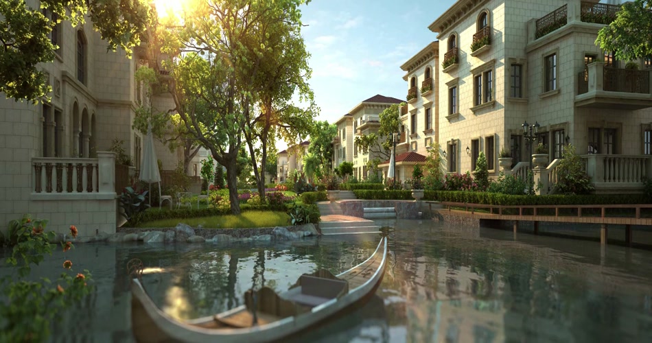 湖景 洋房 别墅 水景 小品 小区环境 唯美 配套设施 游艇 小船 荷花 海景 江景 三维建筑漫游动画 3D动画 房地产