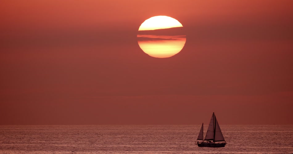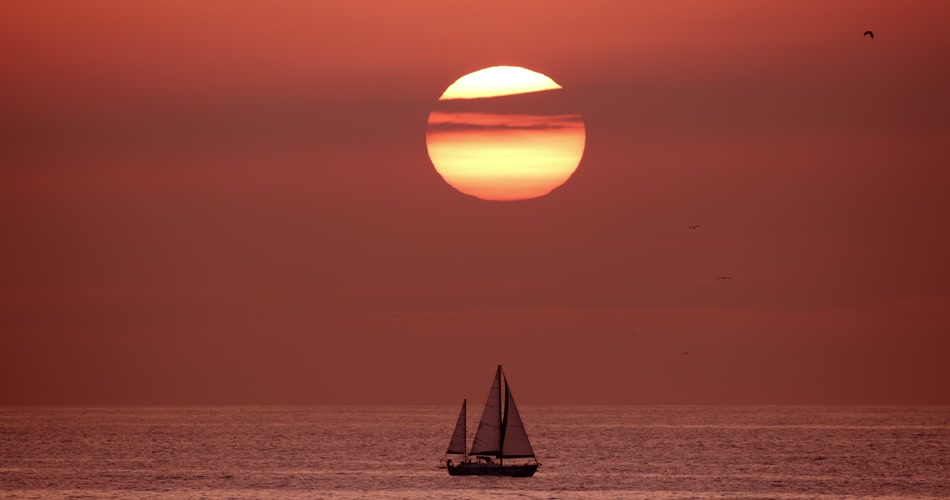 阳光 海 帆船 太阳 日落 景观 游戏中时光倒流 全镜头