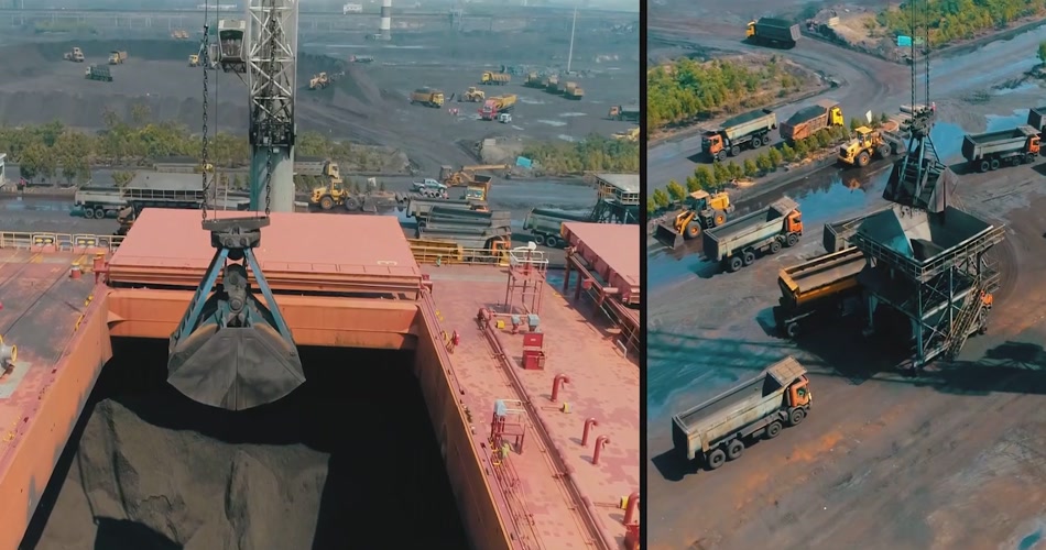 实拍煤矿运输煤矿生产加工线视频素材