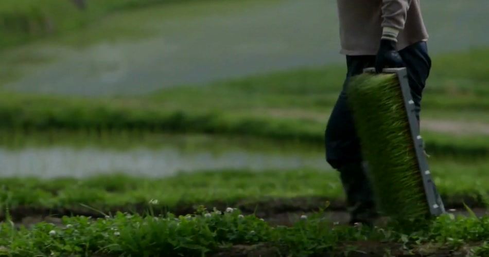 梯田美景机械插秧农业秧苗