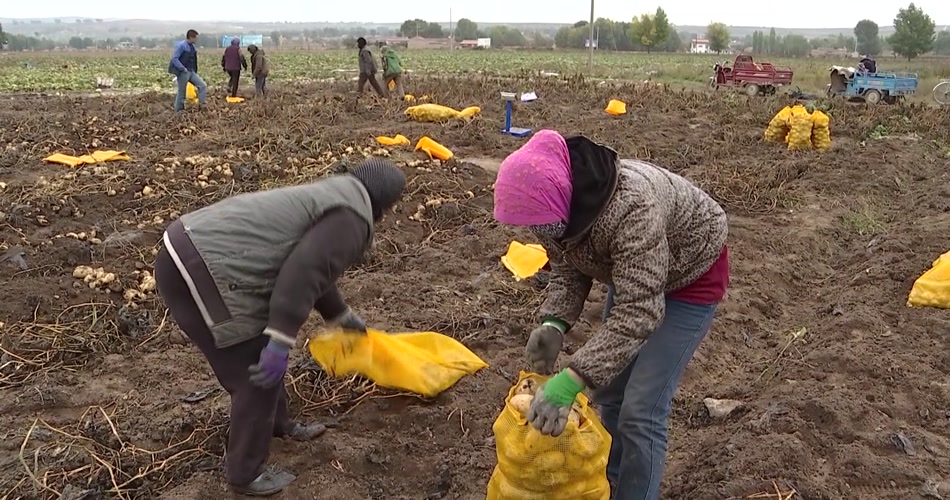 洋芋花航拍农业土豆农村土地秋天收获了视频