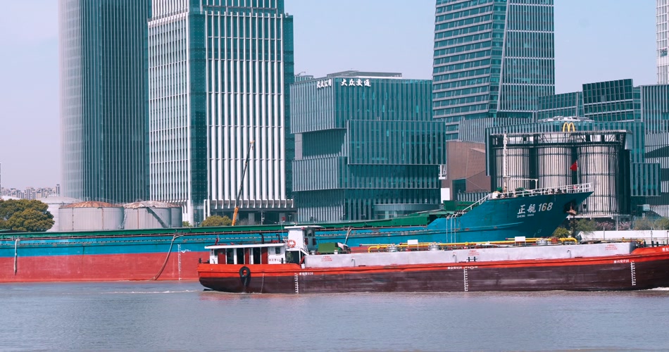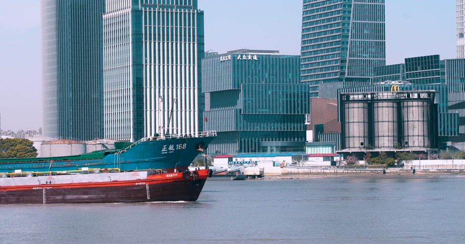 上海黄浦江货轮在行驶中4K