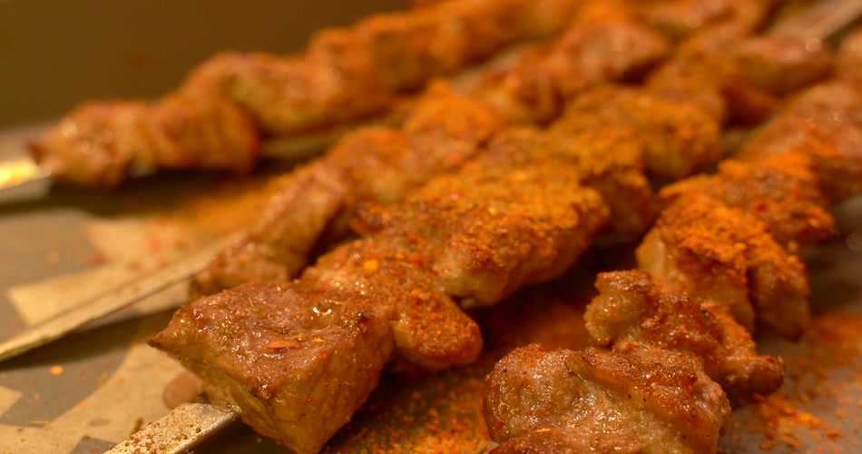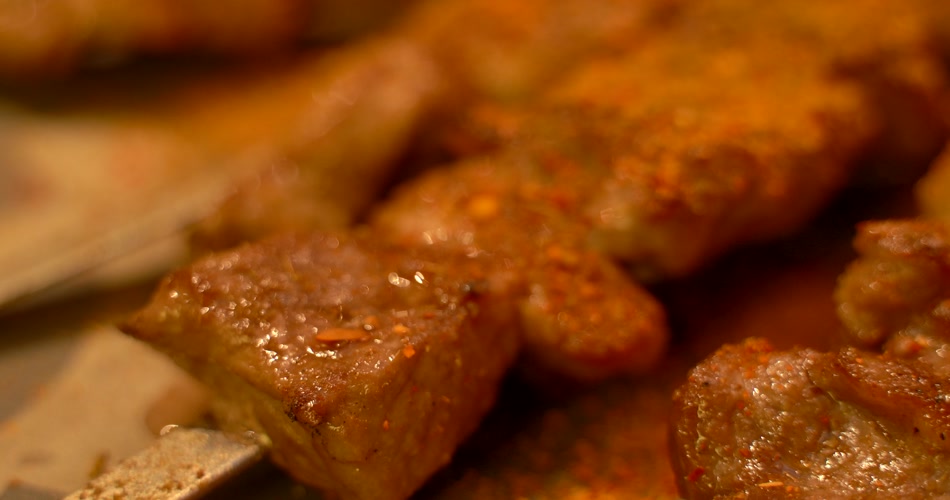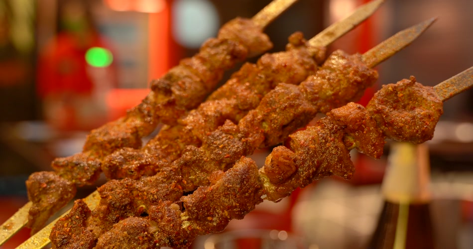 新疆美食烤羊肉串4K