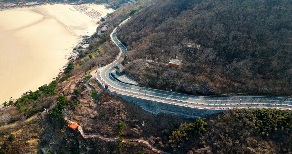 【4K60帧】连云港连岛景区公路风光航拍