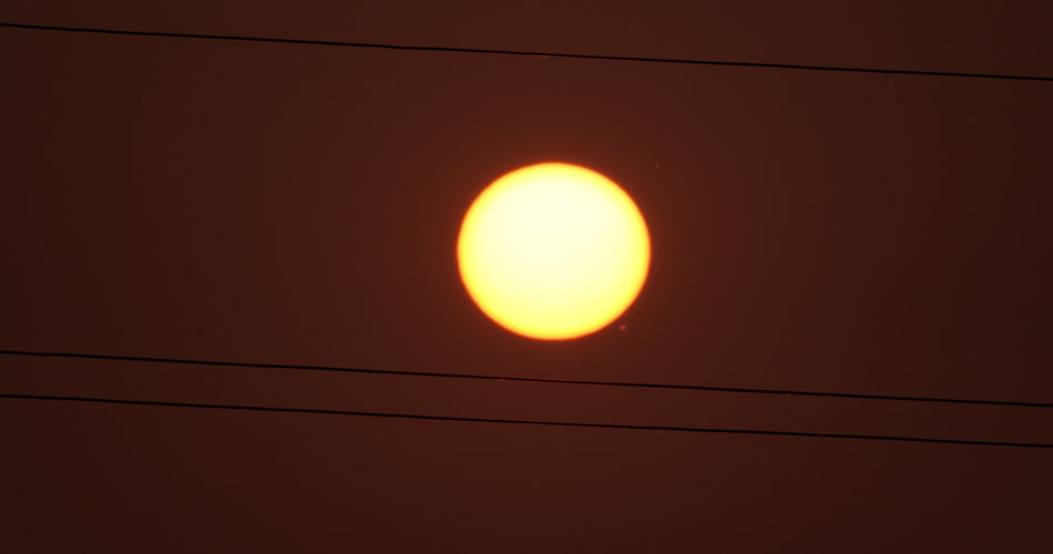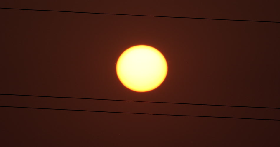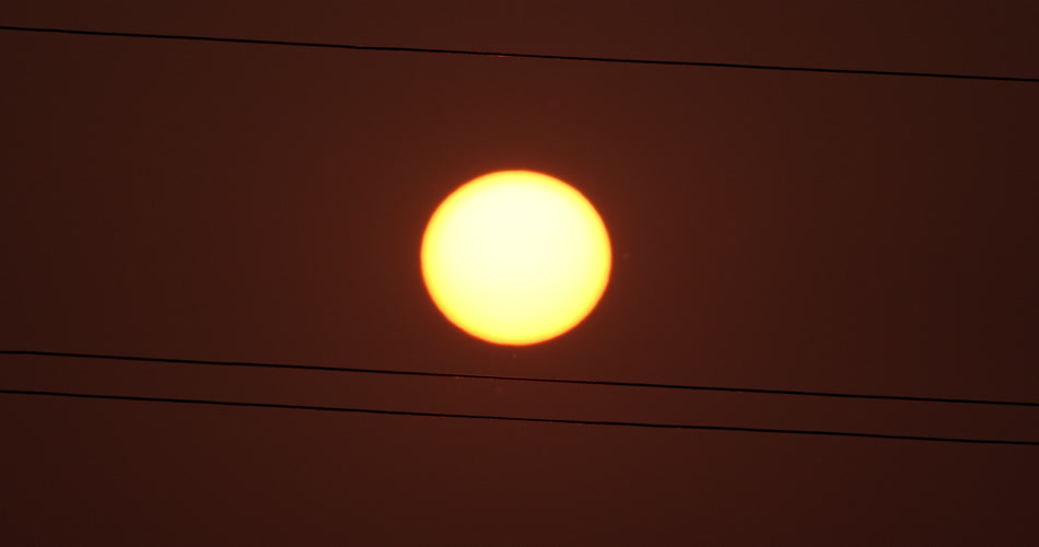 夏天麦田里电线杆中间的太阳