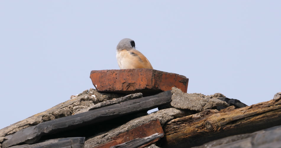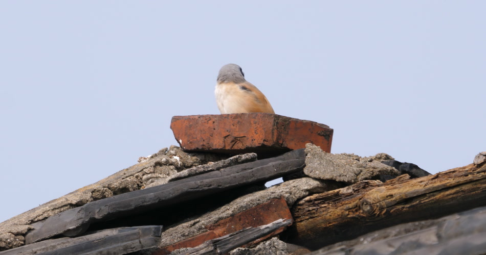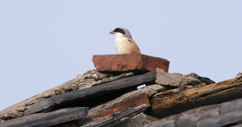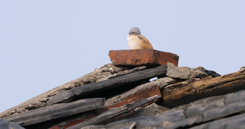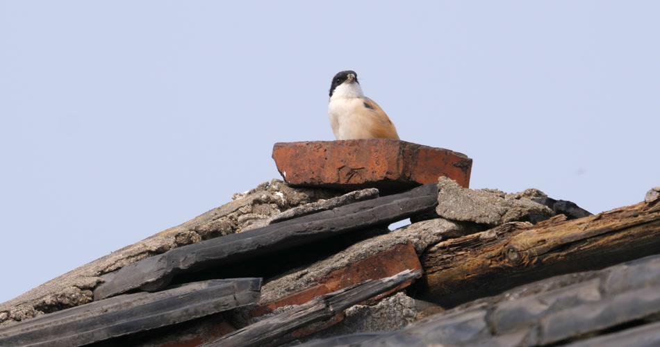 屋顶一只伯劳鸟在等待猎物出现