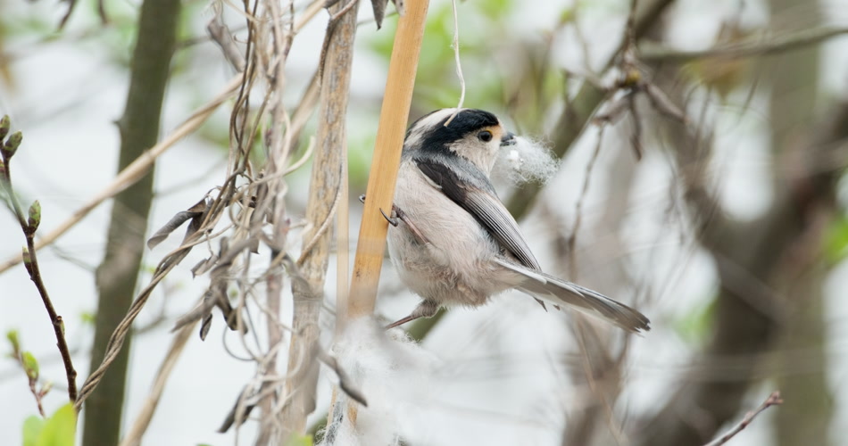 山雀鸟寻找搭巢材料实拍