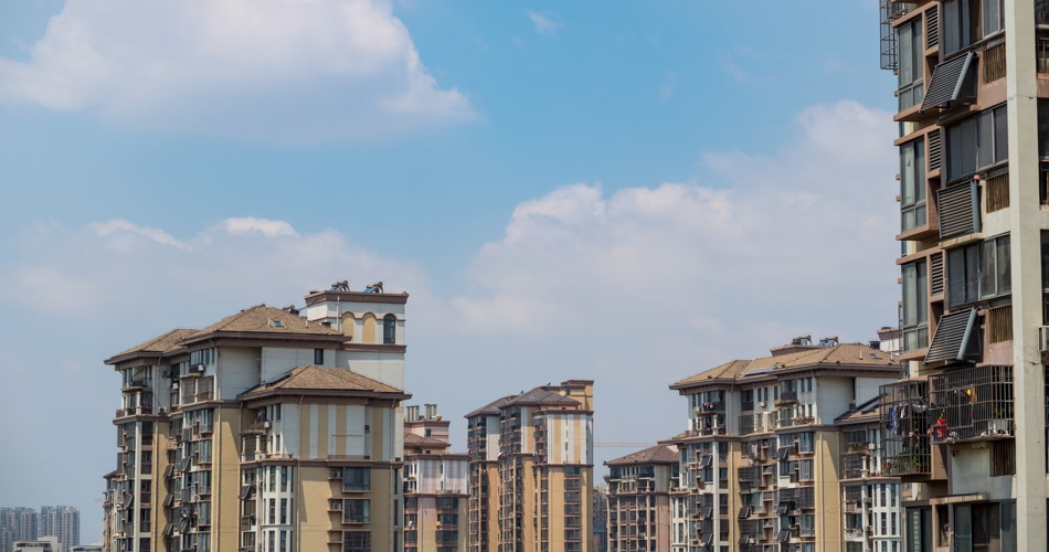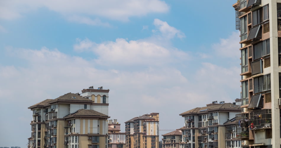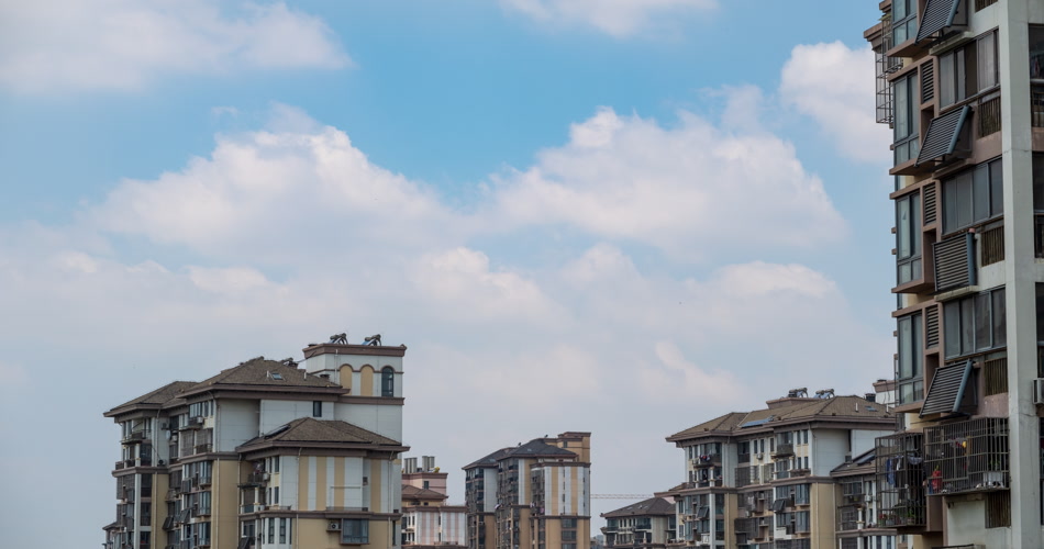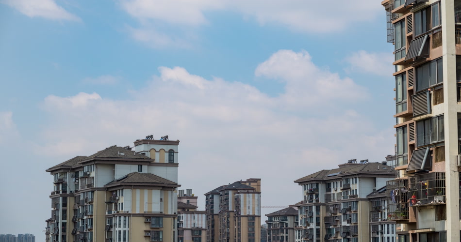 晴天晴朗蓝天白云城市房屋小区居民楼