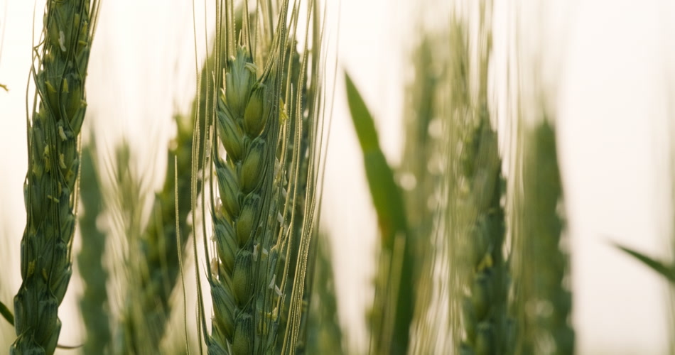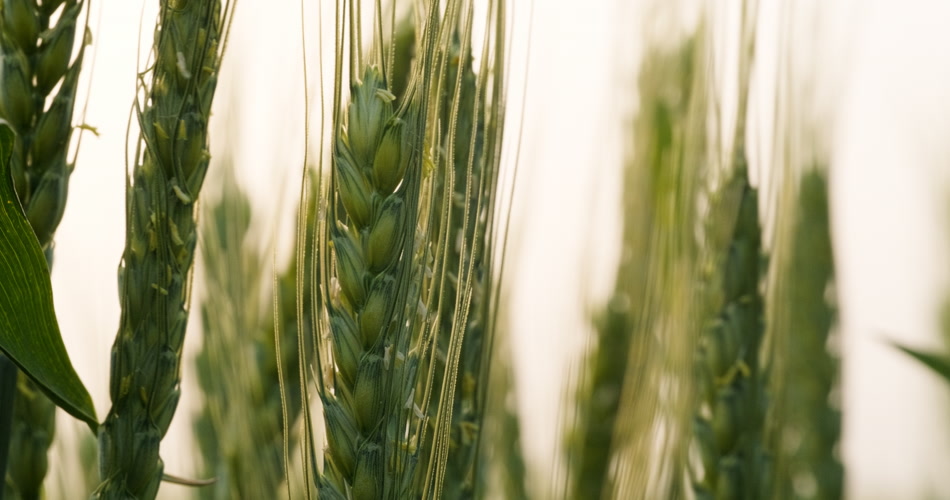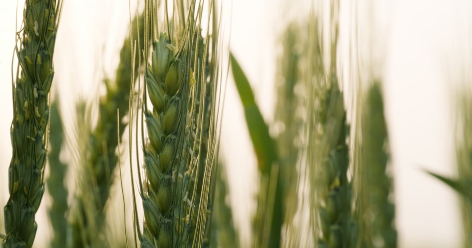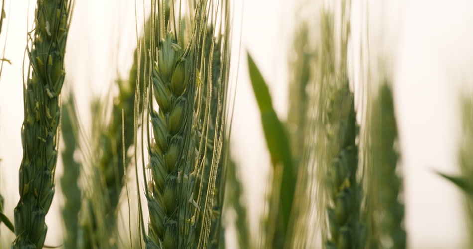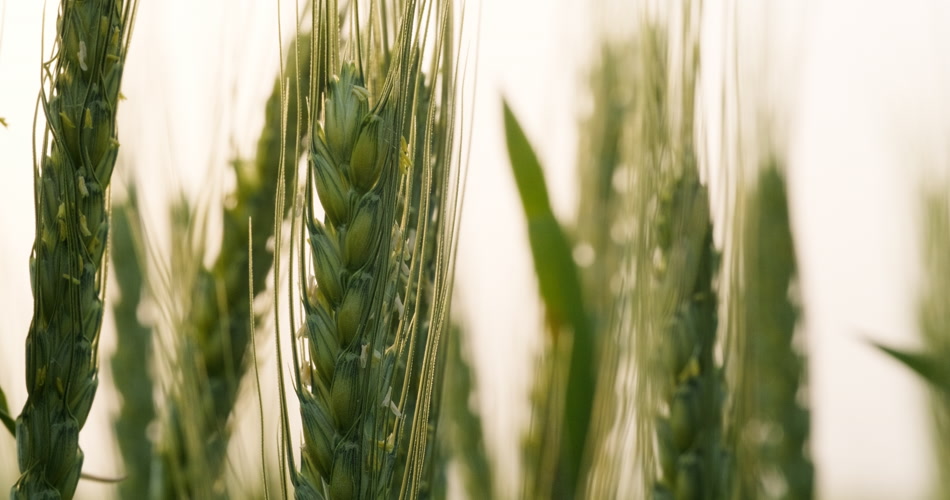清晨朝阳下的绿色金边小麦