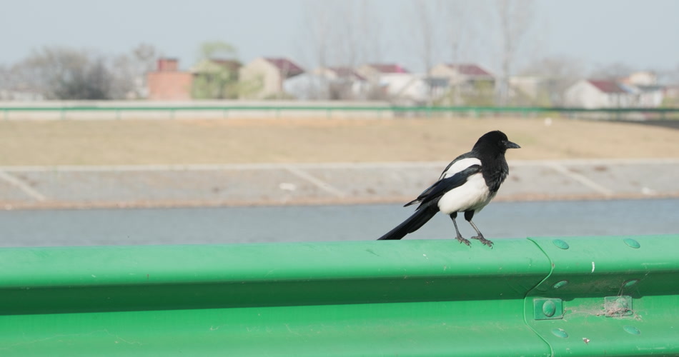 国道边一只喜鹊实拍镜头